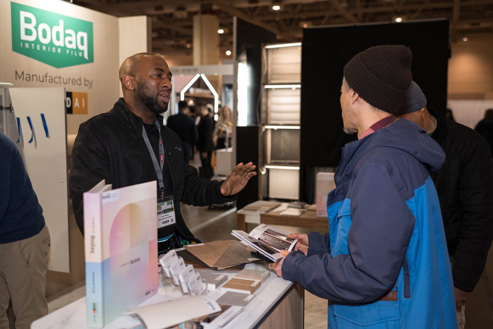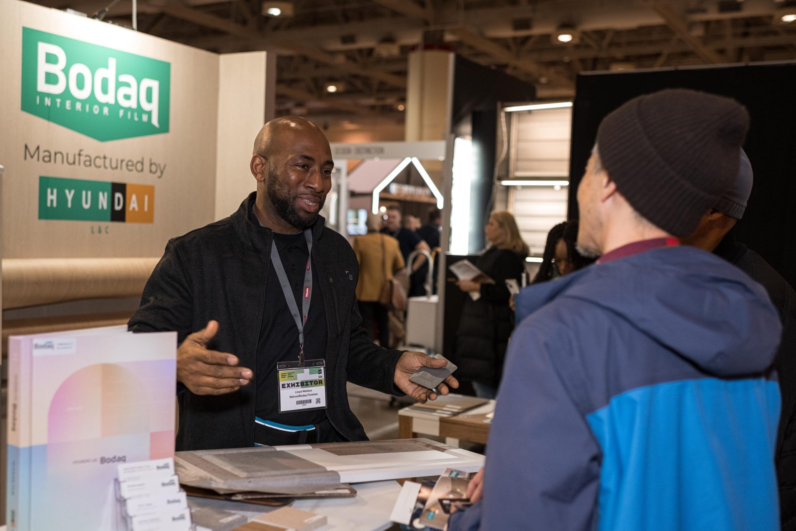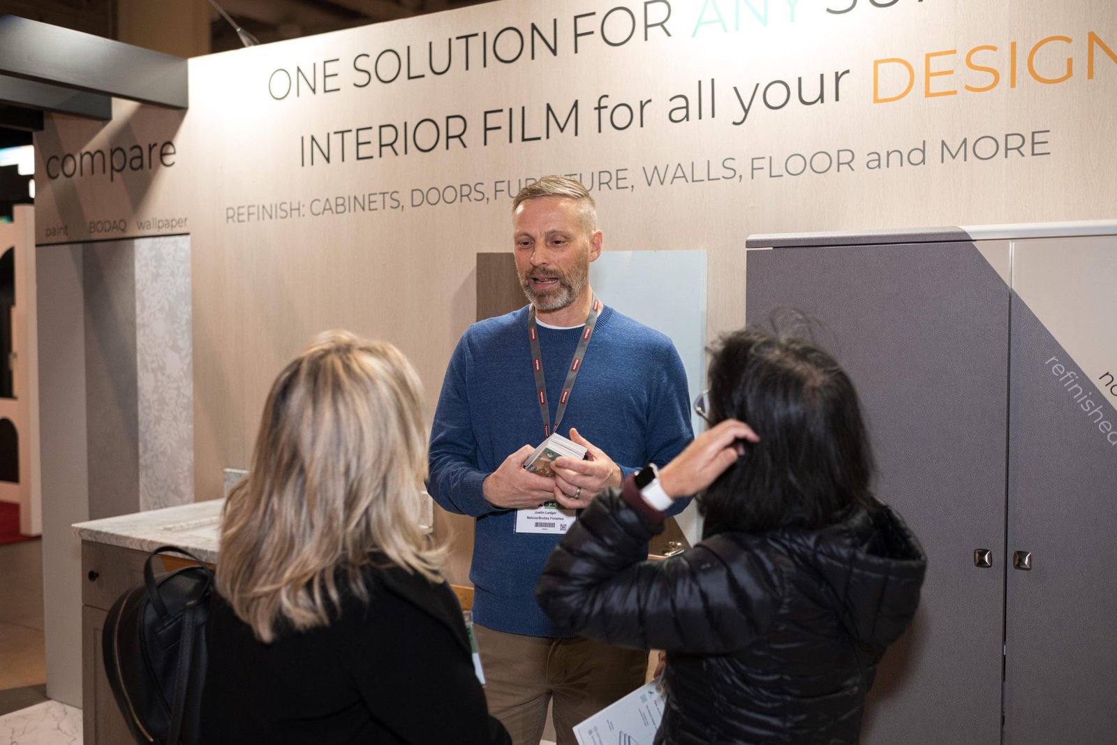 If you are curious about how the Bodaq booth looked, take a look at the photos below. We were happy to showcase different film patterns and a variety of surfaces they can be applied to. We also had our traditional scratch area where everybody could try to damage three types of surfaces – wallpaper, paint, and interior film.