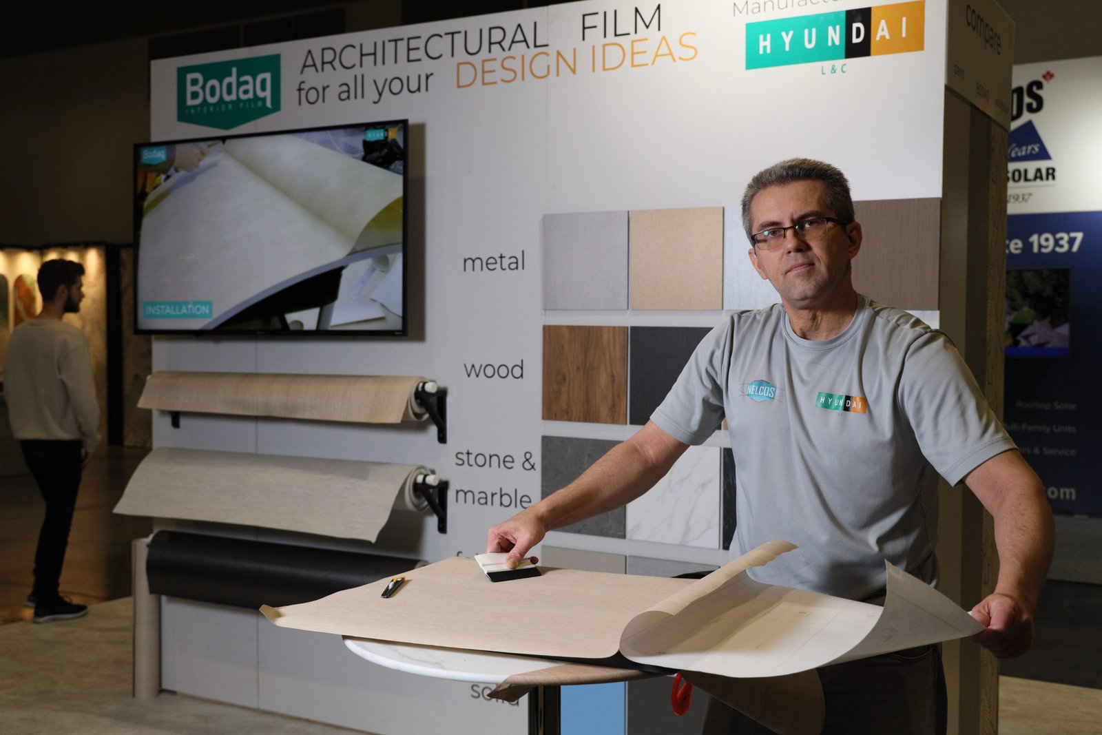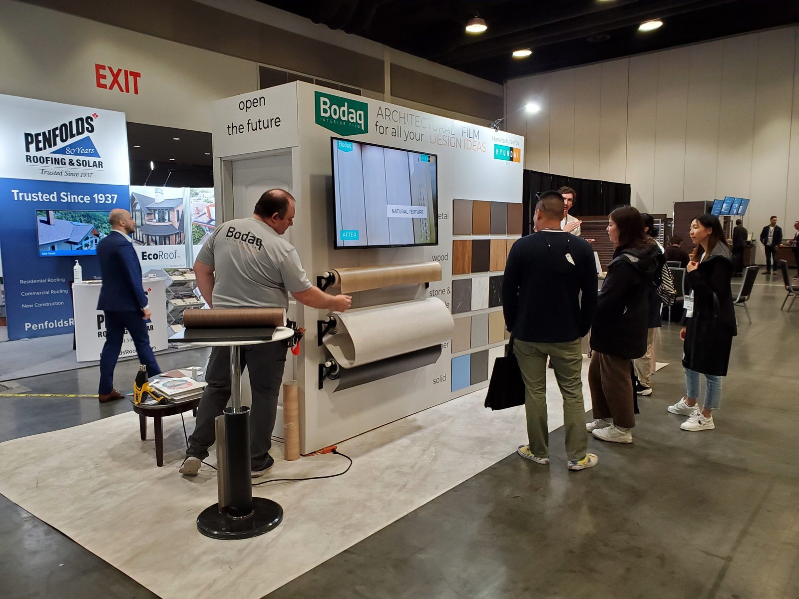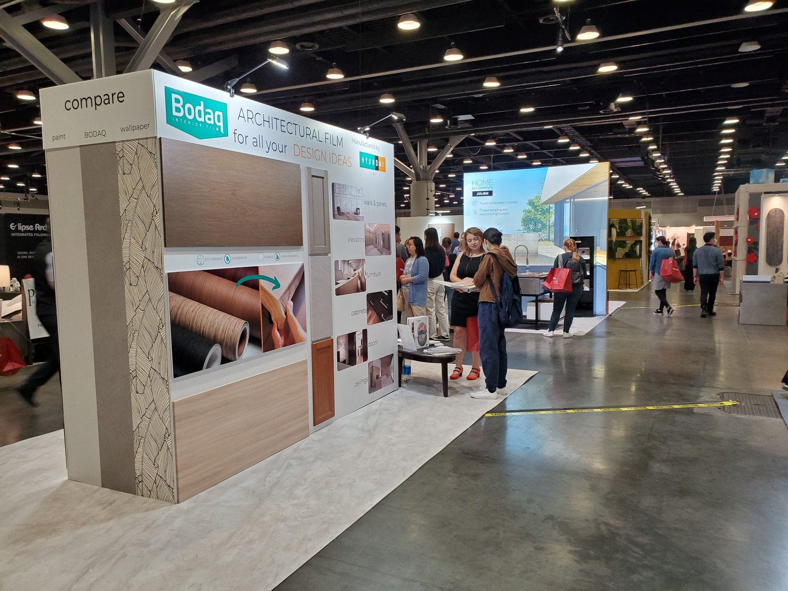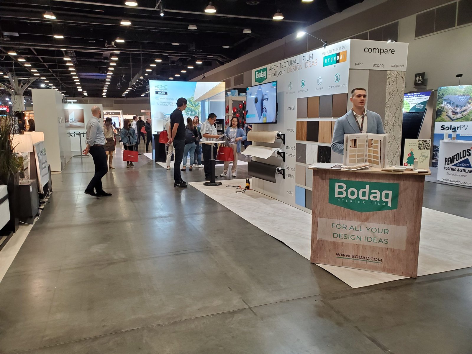 On Saturday, we were overwhelmed by the amount of attention and questions from the show visitors. We were proud to represent an innovative product from Hyundai L&C to the Vancouver audience. This year, we presented the new Bodaq Interior Film Catalog 2022-2023, as well as new patterns and collections.