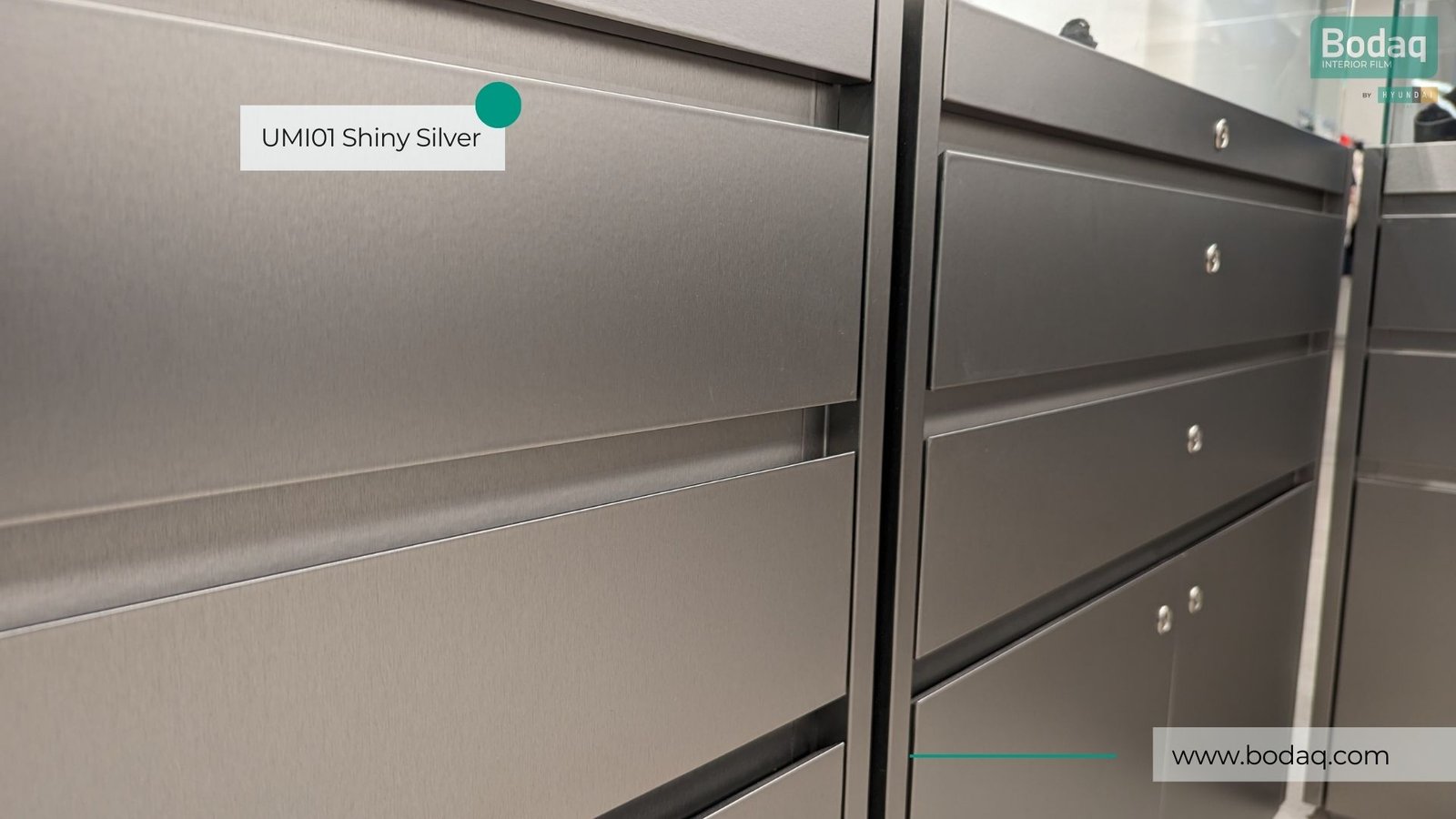 This reflective, sleek silver finish offers more than just good looks. It embodies modern design principles, delivering a stylish yet functional surface that withstands the demands of retail environments. UMI01 Shiny Silver seamlessly integrates with various design elements, making it an ideal solution for store fixtures, display units, shelves, walls, checkout counters and reception areas.