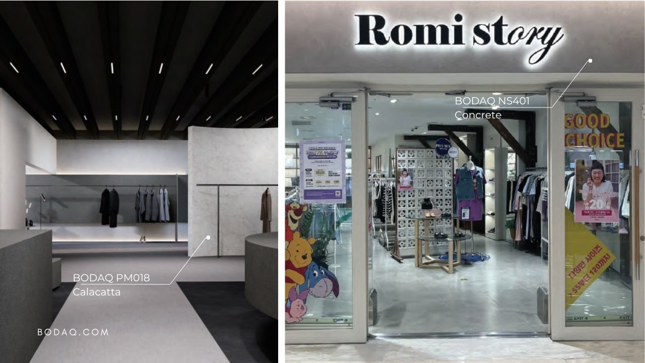 Retail stores choose Bodaq for its unparalleled combination of ease, affordability, and aesthetic versatility. With Bodaq Interior Film, retailers can effortlessly revamp their spaces to match their brand image, creating inviting and stylish environments for customers. From luxurious backdrops for branding elements to innovative solutions for promotional pop-ups, Bodaq offers a wide range of applications that meet the diverse needs of retail spaces. Its ability to mimic various materials, from marble to metal, allows retailers to achieve high-end looks without breaking the bank.