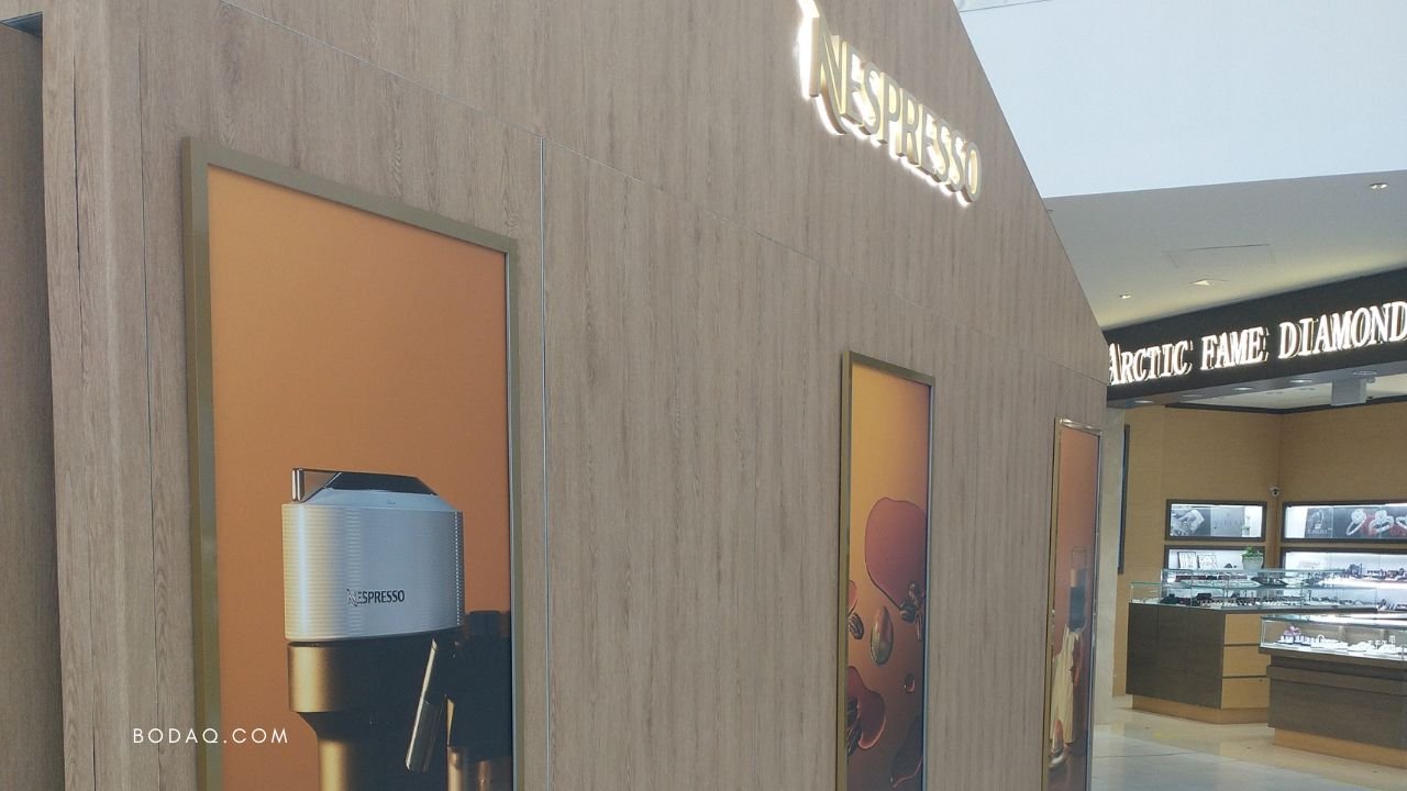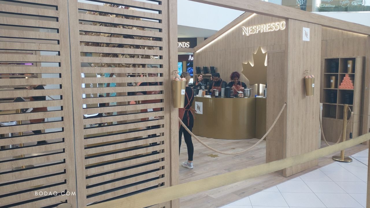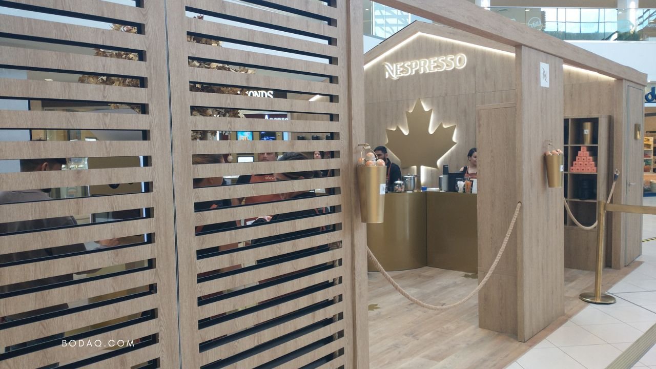 Nespresso transformed its promotional pop-up using the Bodaq Interior Film pattern SPW18 Wild Oak from the Wood Collection. The result? A stunning champagne gold color that captured the attention of passersby and created a memorable experience for customers.