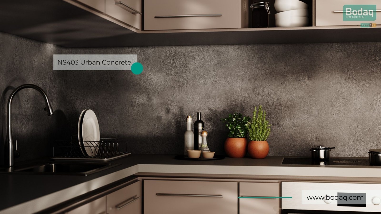 This self-adhesive interior film is easy to apply, making it a practical choice for transforming walls, furniture, countertops, and more. Its dark tone brings an air of mystery and depth to spaces, perfect for creating accent walls or adding contrast to lighter decor. Whether used in a high-end retail environment, a trendy café, or a contemporary home, NS403 offers a stylish and enduring finish that looks and feels like real concrete without the weight or installation challenges.