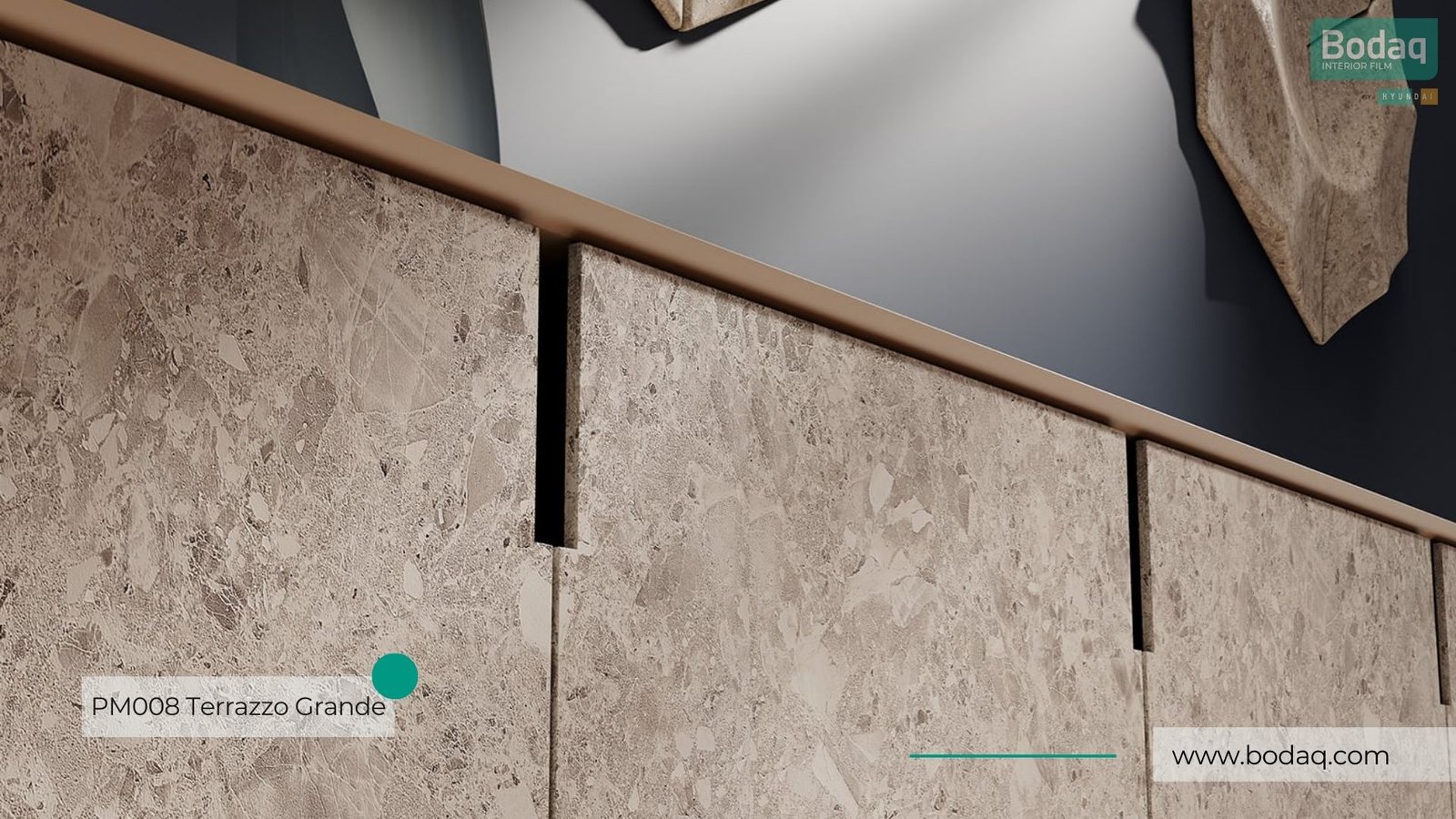 With Bodaq self-adhesive and stretchable properties, PM008 Terrazzo Grande is easy to apply and requires minimal installation effort. It is also highly durable, resistant to wear, and easy to maintain, making it perfect for high-traffic areas such as lobbies, cafes, and hotel rooms. The versatility of Terrazzo Grande allows you to transform spaces effortlessly while achieving a seamless and luxurious finish.