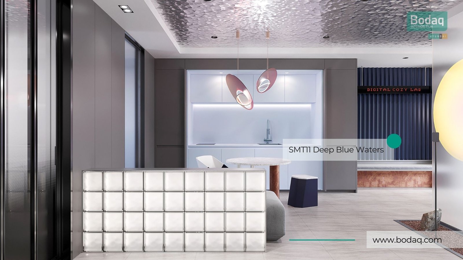The bold yet serene tone of SMT11 Deep Blue Waters makes it a versatile choice for a variety of design applications. Whether you’re transforming an accent wall, cabinetry, or furniture, this pattern adds a touch of serene luxury, perfect for both residential and commercial interiors.