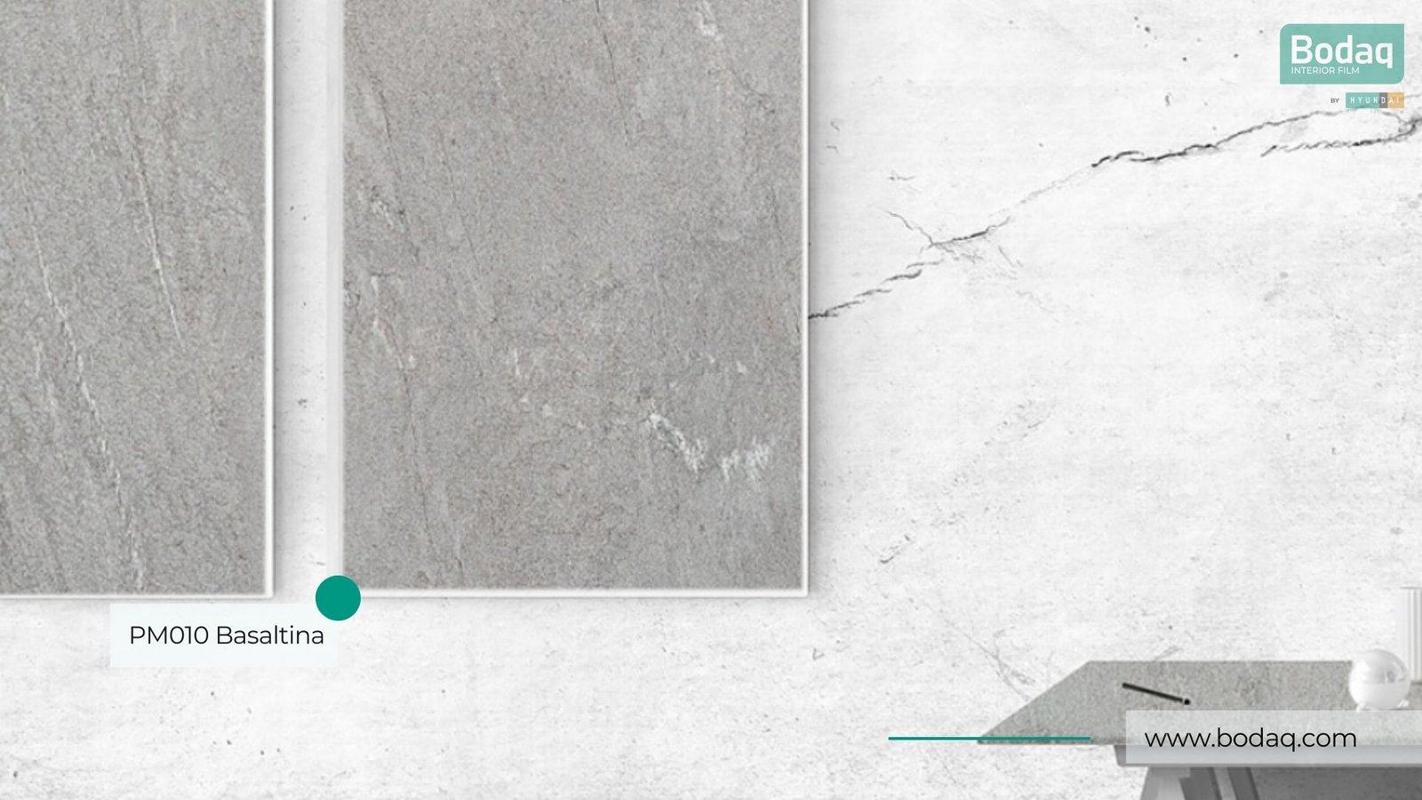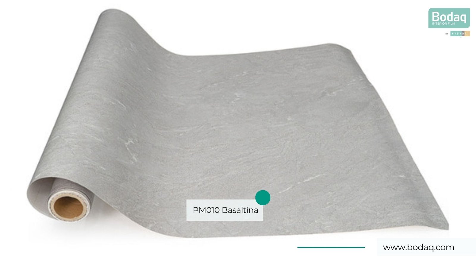 Ease of Installation and Maintenance: PM010 Basaltina offers all the convenience of Bodaq Interior Film’s self-adhesive technology, making installation straightforward and hassle-free. It doesn’t require the extensive preparation and maintenance that real stone does. Once installed, it can be cleaned easily, helping to keep spaces looking pristine with minimal effort.