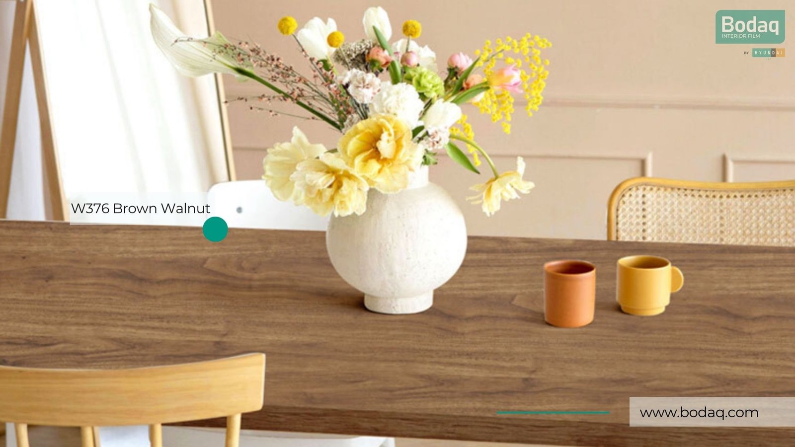 As part of the Bodaq Interior Film lineup, W376 Brown Walnut combines exceptional aesthetics with high-performance functionality. This self-adhesive, stretchable film is easy to apply to a variety of surfaces, including curved or irregular shapes. Its durability ensures it resists scratches, stains, and everyday wear, making it ideal for high-traffic areas while maintaining its stunning appearance for years.