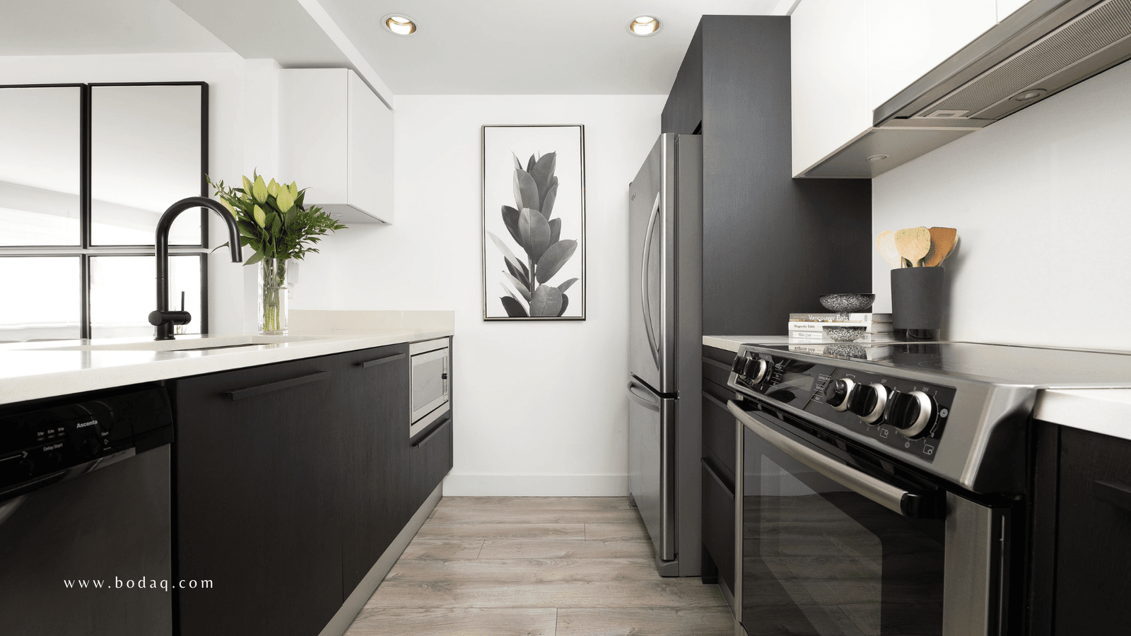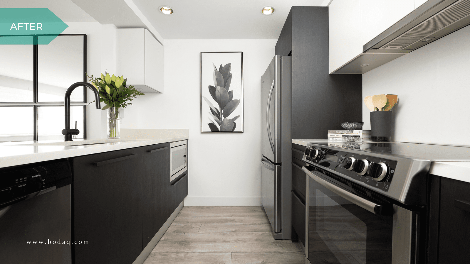 In this case, Kassam focused on updating the lower kitchen cabinets and bathroom vanity, two key areas of any home.