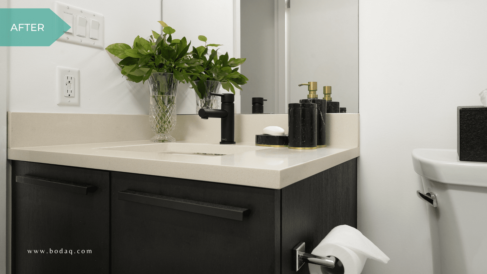 The change of hue highlighted a new faucet and also helped offset the existing quartz countertop nicely, all completed in a matter of days by expert installers.