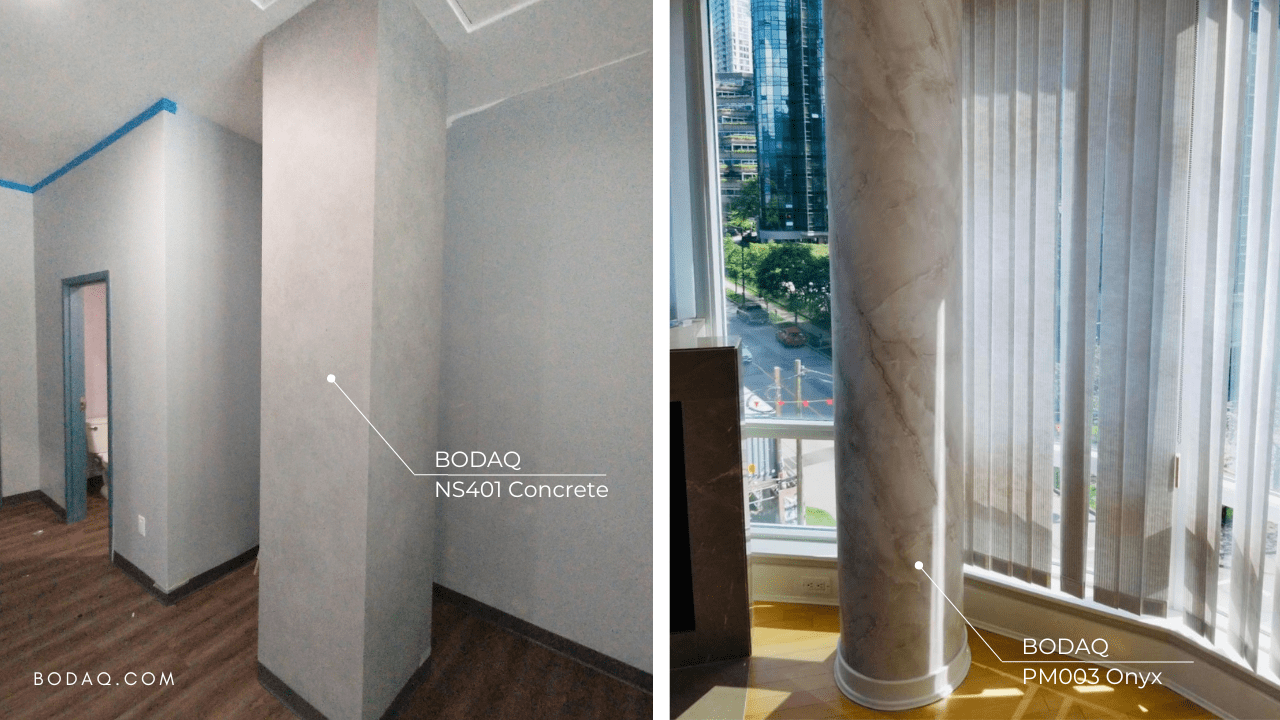 Using interior film on columns not only allows you to transform their appearance but also protects against wear and tear. It is a durable, low-maintenance solution that can withstand daily use, making it ideal for high-traffic areas.